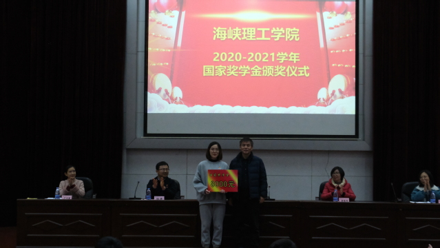 会上,海峡理工学院党委副书记陈勇宣读荣获2020-2021学年国家奖学金、国家励志奖学金、三明学院优秀学生奖学金及三明市关工委专项资助学生名单,63位获奖者依次上台接受表彰。获奖学生代表、国家奖学金获得者石含翊、国家励志奖学金获得者肖欣悦、董邱华与在场师生分享自己的成长故事与学习心得。教学科研科江琳老师对期末考试相关注意事项进行了说明,提醒同学们严格遵守考风考纪,诚信迎考。2018级财务管理专业黄雯婷同学作为学生代表就诚信迎考发出倡议并带领在场学生进行诚信考试宣誓。